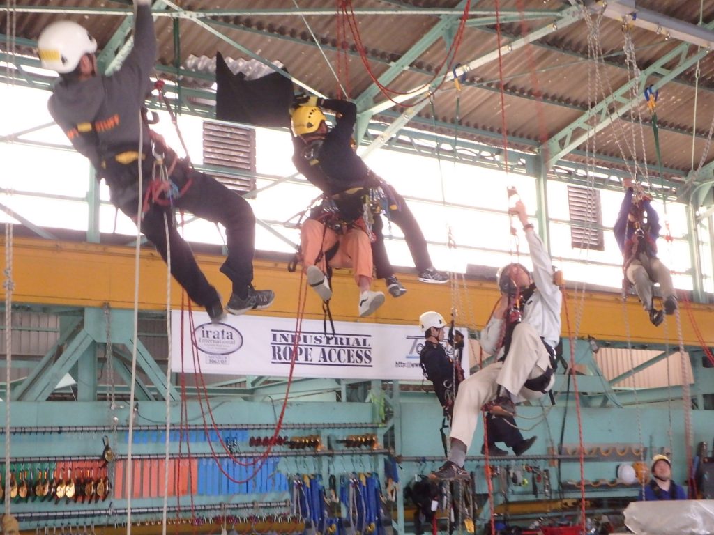 5日間のトレーニング後、実技試験があります。 合格するとIRATAロープアクセス国際資格が発行されます。 風力発電・洋上風力発電で活躍するロープアクセス人材が求められています!! JIRAAトレーニングも同時開催です。 |