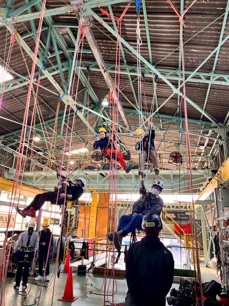 装備は全て会場にあります ロープアクセスに必要な装備は全て会場にありますので動きやすい服装があれば、受講できます。※EN規格品であれば個人装備の持ち込みも可能です。