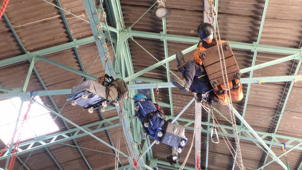 自分が2ロープ2ポイントになっている事は絶対条件ですが、要救助者との接続も必ず2箇所で行います。