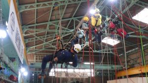 ロープアクセス仕事に興味ある方も見学に来られてます。どうやら就職がきまったような・・・・?